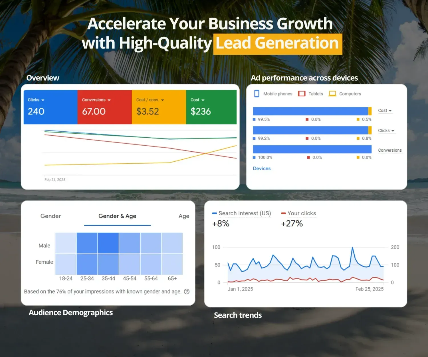 We plan, launch, and optimize ad campaigns that drive traffic, leads, and sales; maximizing your ROI across platforms like Facebook, Google, and Instagram.